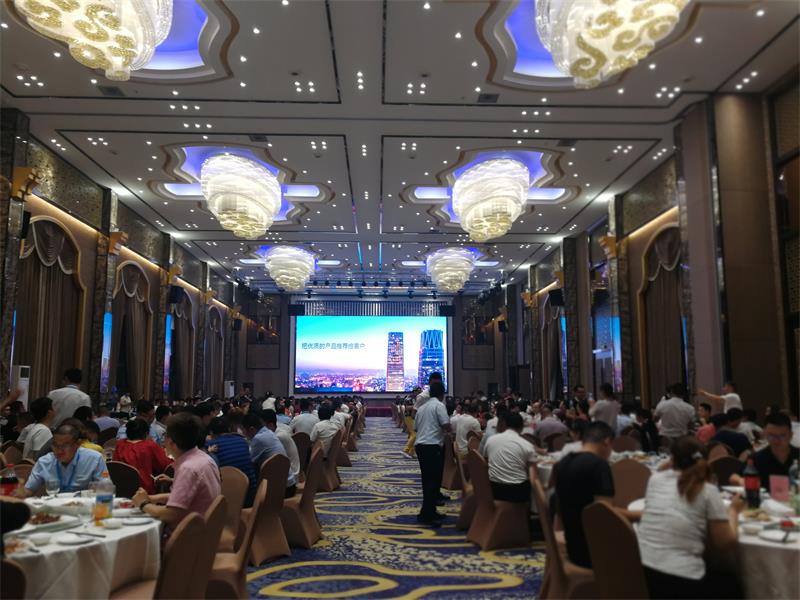 晚上,我公司舉行了盛大的客戶答謝晚宴,參加人員達(dá)到500余人。